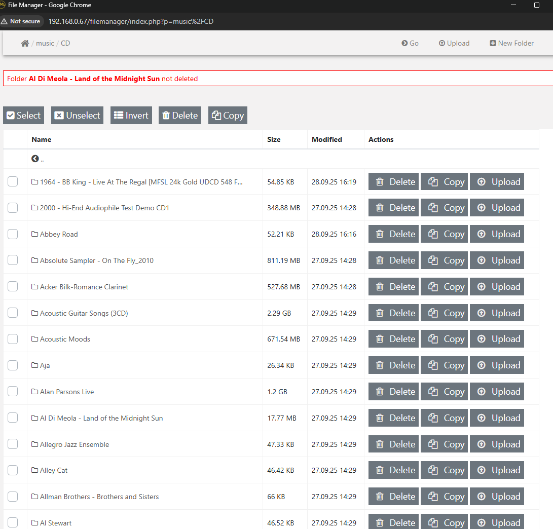 Warning : unlink(/storage/music/CD/Al Di Meola - Land of the Midnight Sun/01 The Wizard.m4a): Permission denied in /var/www/html/filemanager/index.php on line 2976