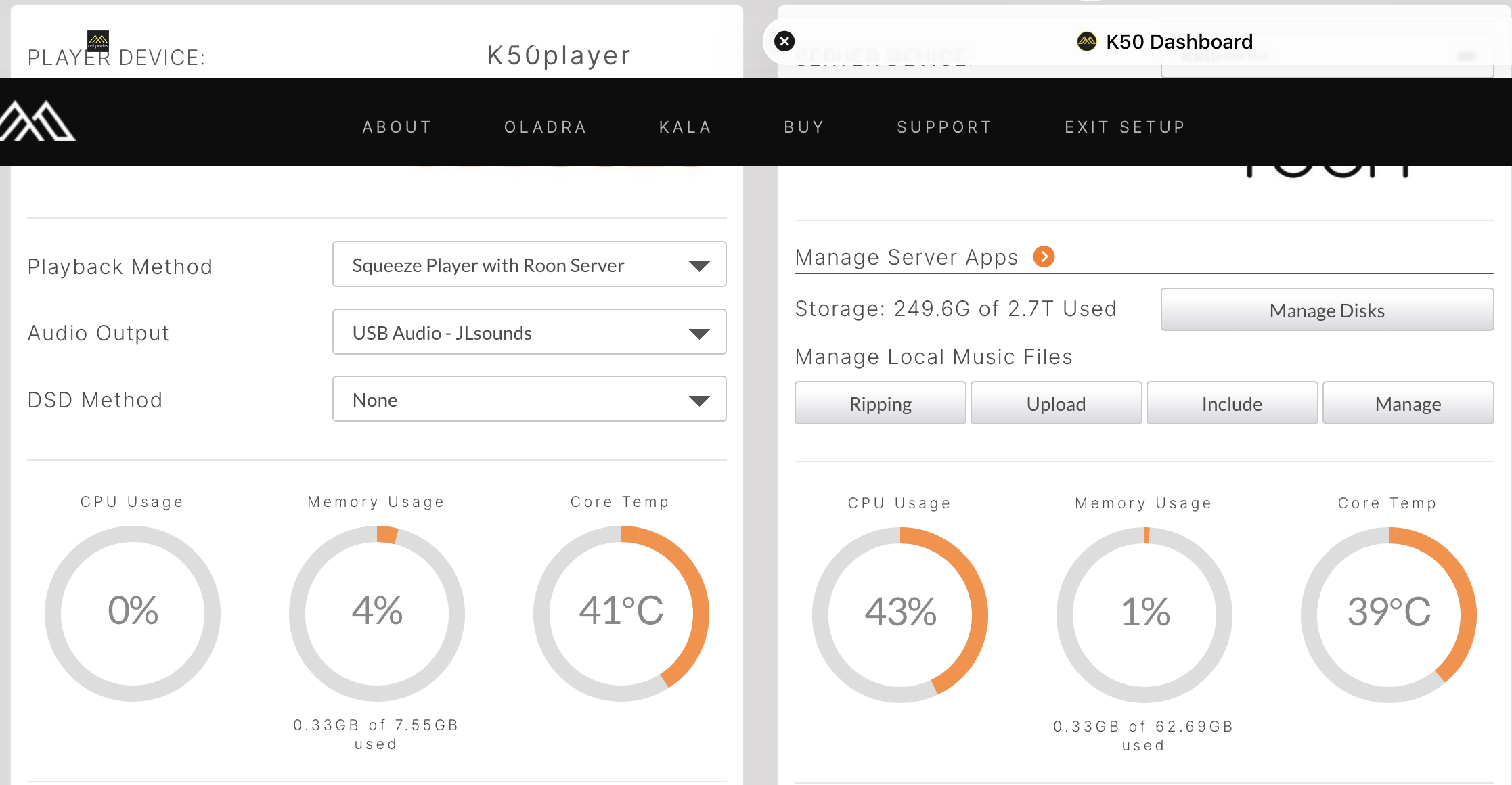 Roon server on my K50 is acting strange too now. The music keeps stopping, Roon server becomes unresponsive and the dashboard shows cpu jumping around between 0 to 112%. I’ve rebooted the K 50 my router and network switch. Seems to work again for a while but the problem comes back.