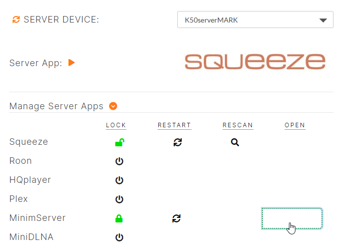 I’m running full squeeze and thus turned off all other server type but I noticed that the minimserver would’ve started automatically without me enabling it. And somehow there’s no icon under the rescan and open column like the normal enabled server, which is weird. I went to IP: 9790 and the web UI came up, meaning the minimserver is indeed running…