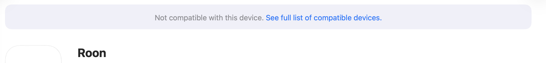I was getting a number of issues with launching Roon Remote on my MacBook Pro (although relatively few issues once launched). It appears from what I’ve read elsewhere that I’m not the only one, as I’ve seen a number of posts on the subject. Attempting to re-download a new copy of Roon Remote using the link on the Roon website to the App Store now shows the message…