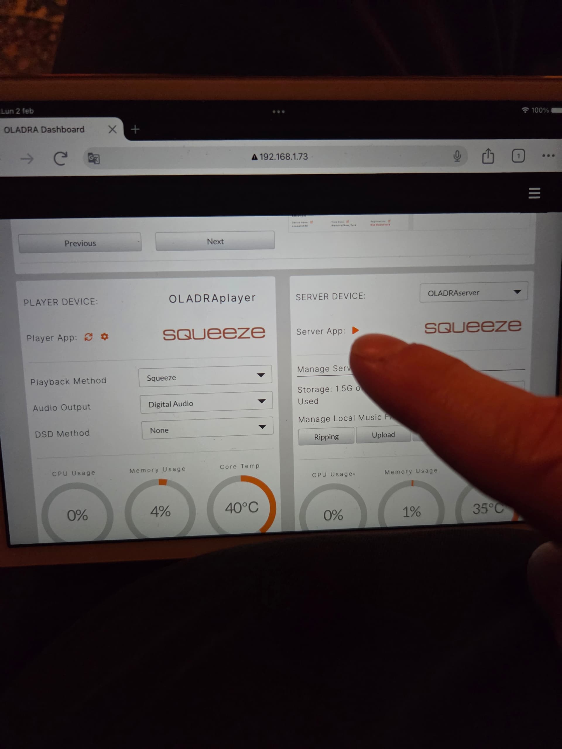 In the player section start with choosing Squeeze. Then in the server section choose ‘server app’ next to the Squeeze logo.