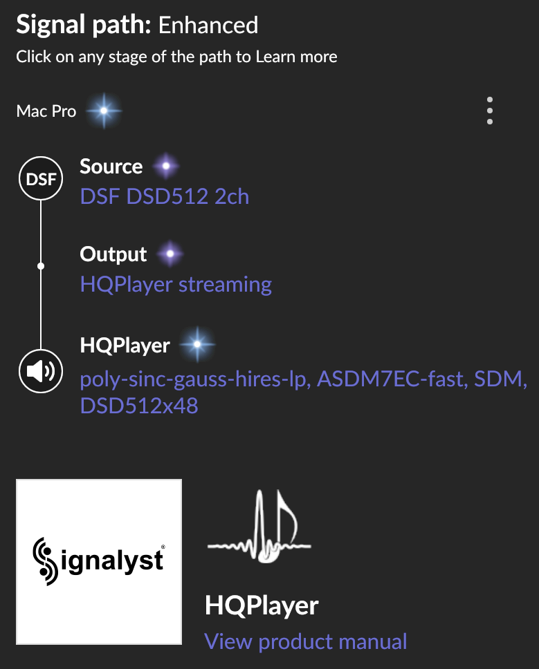 This weekend, for the first time, I have HQPlayer upscaling to DSD512 via integration with Roon. I had to involve my 2019 Mac Pro. The best sound quality that I have heard from Roon.